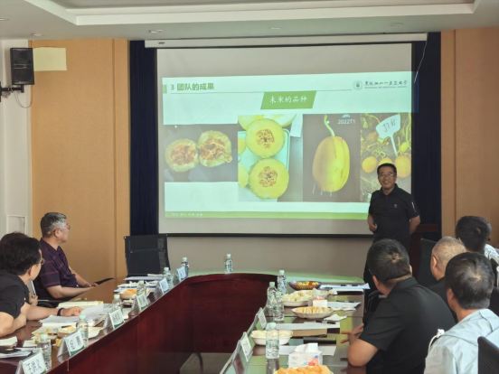 靳亚忠、王洪义两位系主任就学院在设施蔬菜育种栽培、园区规划设计方面取得的研究应用成果做了专题介绍。 与会专家们聚焦甜瓜、番茄新品种选育的技术难点与创新方向、成果转化中的实际问题,分享了各自的见解与思路。