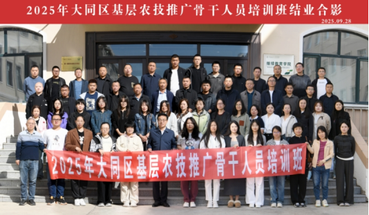 为进一步强化基层农技推广体系公益性服务功能,提高农技推广效能,助力加快推进龙江“三农”高质量发展。9月28日,经过为期7天的集中培训,2025年大庆市大同区基层农技推广骨干人员培训班在我校顺利结业,园艺园林学院院长杨凤军、应用科技学院殷术鑫、大同区农村社会事业服务中心宋悦、园艺园林学院王宁,以及70名来自大庆市大同区基层农技推广骨干人员参加结业仪式,仪式由王宁主持。
