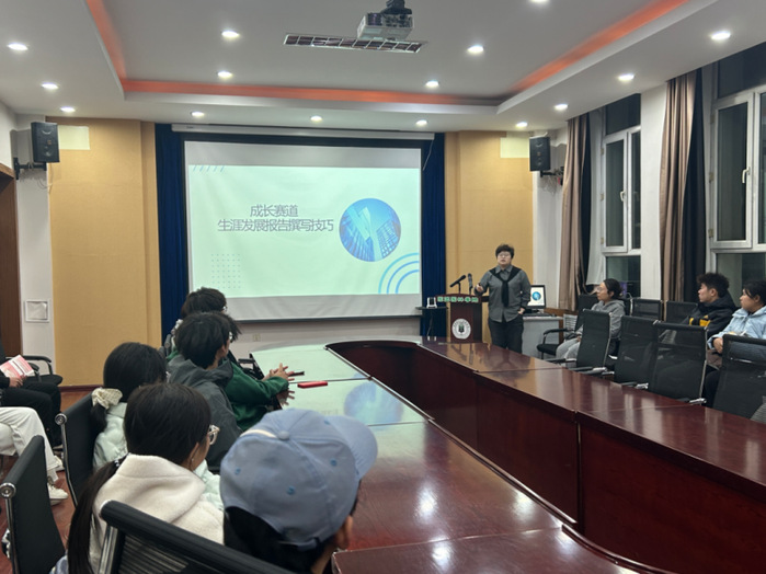 会上,付博锐从活动要求、职业定向、政策视角、生涯报告撰写等多个方面展开介绍,详细讲解了职业生涯规划大赛的各个环节,并引导同学们掌握职业生涯规划的方法和技巧。此外,还带领大家一起剖析了职业规划的成功案例,以便同学们能够从中汲取经验,不断完善自己的职业规划。