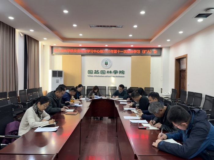 11月4日,园艺园林学院党委理论学习中心组召开2025年第十一次集体学习(扩大)会,学院全体中心组成员、辅导员、党支部书记参加学习,学院党委书记张南主持学习会。