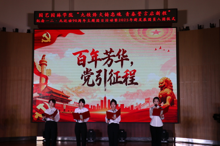 为铭记历史、传承红色基因,教育引导广大团员青年将个人理想融入国家发展大局,厚植家国情怀,激发爱国热情,12月8日,园艺园林学院于大学生活动中心106室举行“九秩烽火铸忠魂,青春誓言启新程”纪念一二·九运动90周年主题团日活动暨2025年新发展团员入团仪式。学院党委副书记徐娟,全体辅导员及2025年新发展团员参加活动。
