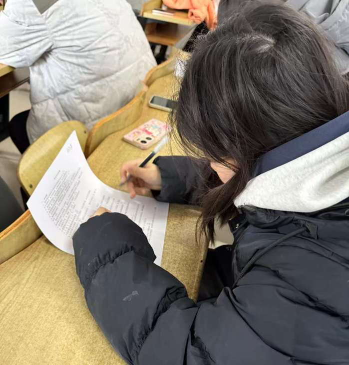 本场竞答活动恪守“公平、公正、公开”原则,采用线下笔试的形式展开角逐。试卷分发的瞬间,原本安静的教室更添几分肃穆,同学们手握笔杆、凝神思索,笔尖在纸张上沙沙游走,将平日里积累的宪法知识点一一落墨。整场竞答活动组织严密、秩序井然,选手们以饱满的热情和严谨的态度投入答题,充分展现出我院学子扎实的法治知识素养与昂扬向上的青春风貌。
