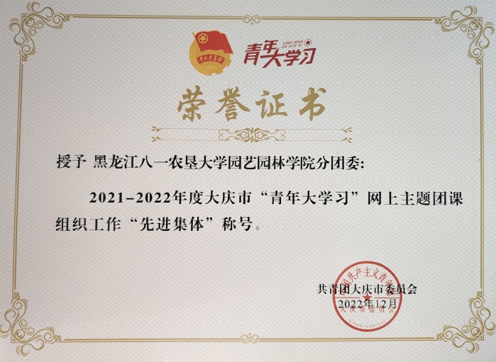 五年来,学院团委高度重视团干部队伍建设,提升团干部的综合素质和业务能力。完善团干部“选育管用”机制,结合学院特色先后开展师生团干部素质拓展活动、“园冶菁才”学生骨干培训班等近百期,打造忠诚、干净、担当的团干部队伍,为党培育有理想、敢担当、能吃苦、肯奋斗的生力军。学院教师获大庆市“全市优秀共青团干部”“垦区优秀团干部”,学生获大庆市“全市优秀共青团员”、校级“优秀学生骨干”等多项荣誉。