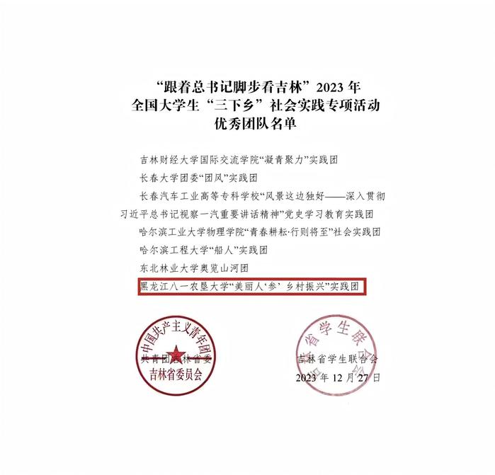 五年来,学院团委紧密围绕国家战略部署,创新构建“三位一体”社会实践模式,将思想政治教育、专业技能提升、服务基层需求有机融合。累计组建近500支实践团队,带领2000余名师生奔赴全国各地开展社会实践,取得显著成效。先后获得“跟着总书记脚步看吉林”全国大学生“三下乡”社会实践优秀团队、校暑期“三下乡”社会实践优秀团队等荣誉称号。