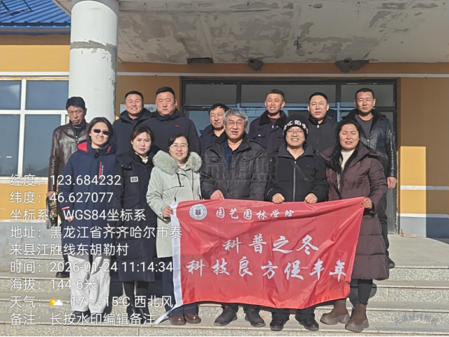 冬藏福至,科技送暖。1月24日,黑龙江八一农垦大学园艺园林学院教师团队杨升、靳亚忠、张雨婷、吴瑕4人一行,深入泰来县江桥镇,开展 “科普之冬” 乡村振兴助农行动,通过面对面座谈、手把手指导,将前沿农业科技与精准帮扶服务送到乡村振兴第一线。
